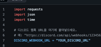 그 다음 YOUR_DISCORD_URL에다가 붙여넣으면 끝!