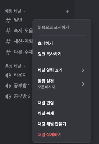 채팅 채널에 우클릭 -> 채널 편집을 눌러준다